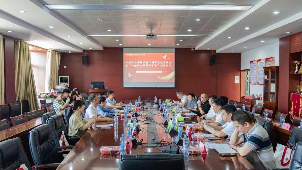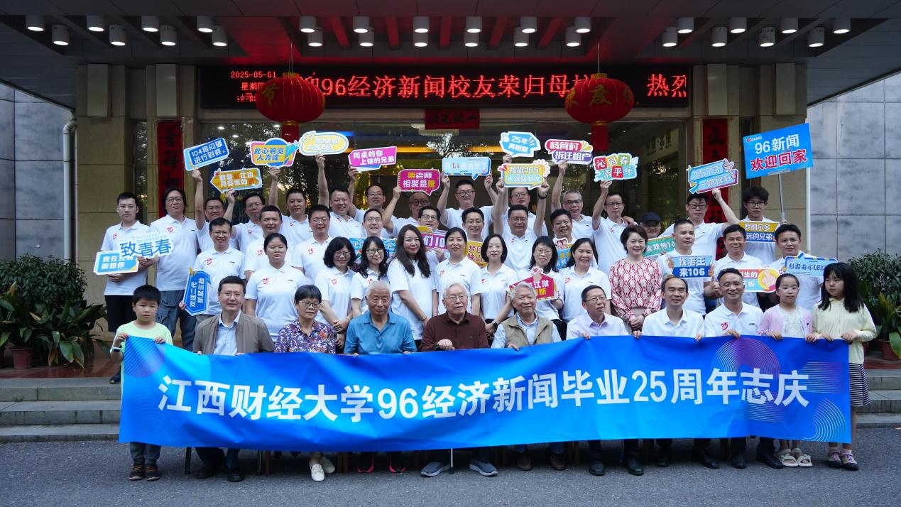 见面会上,校友们与恩师重逢,场面温馨感人。面对全国首届经济新闻班的优秀学子,学校原经济文化传播系主任熊焰教授为校友作了一副对联:“独树一帜江右突起经济新闻春雷动,欢歌九霄学子荣归雄师闯将浩荡来”,既饱含对往昔师生情谊的珍视,又寄托了对校友事业发展的殷切期许。