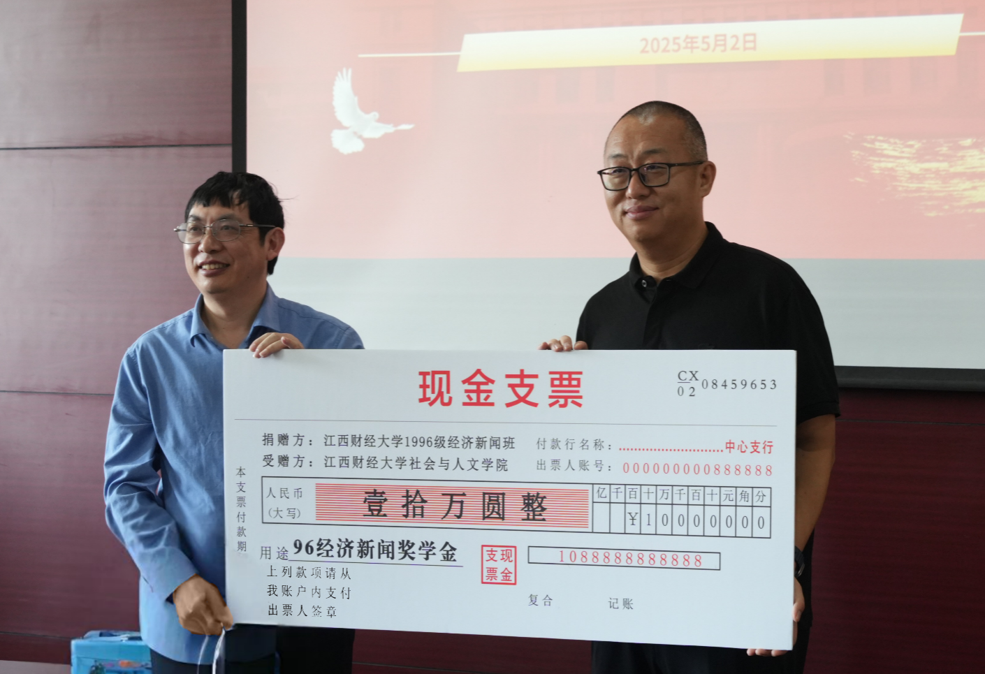 校友代表李勇璋介绍了班级捐赠情况,感谢学院与各位老师对96级经济新闻班同学的培养,表示将持续关心和支持母校的专业建设和发展。
