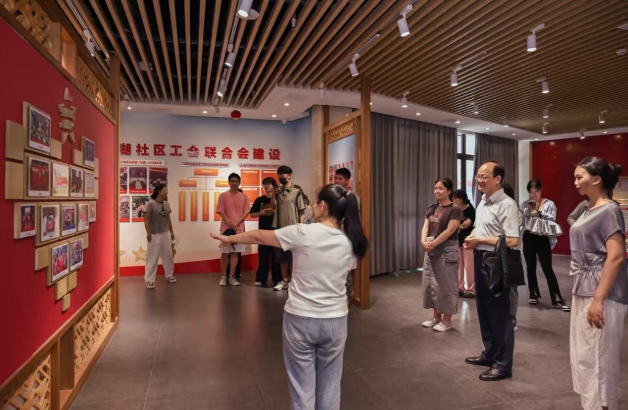 随后,调研团队参观了正荣大湖社区职工之家。这一综合性场所集办公、休闲、学习于一体,设有儿童阅览室、成人借阅区、健身区等功能空间,既为职工提供便利,也为社区居民打造了学习娱乐的共享平台。同时,职工之家还通过创建兴趣社团、举办文体活动、构建互助平台等多种方式,不断提高社区居民之间的凝聚力,使居民之间架起一座信任、诚挚的桥梁。